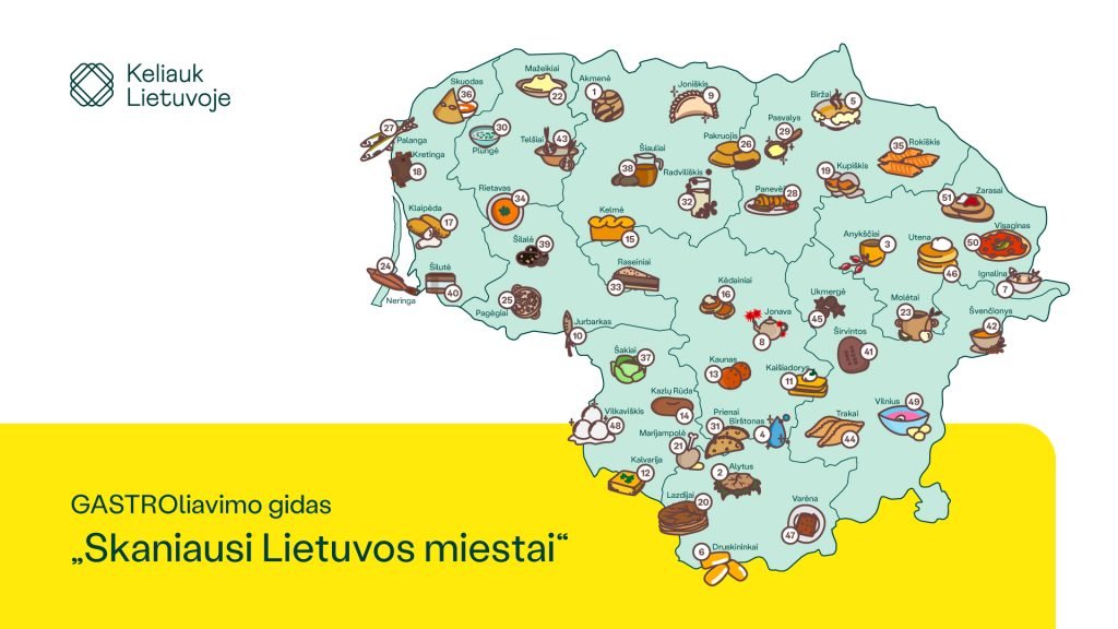 Panevėžys garsus ne tik Čičinsko kepsniu, Raseiniai – ne tik Viduklės koldūnais, Trakai – ne tik kibinais, o Telšiuose skanaujami ne tik žemaičių blynai. Nacionalinė turizmo skatinimo agentūra VšĮ „Keliauk Lietuvoje“ kartu su turizmo informacijos centrais pristato patiekalų, kurie yra tapę savotiškais miestų simboliais, žemėlapį „Skaniausi Lietuvos miestai“.